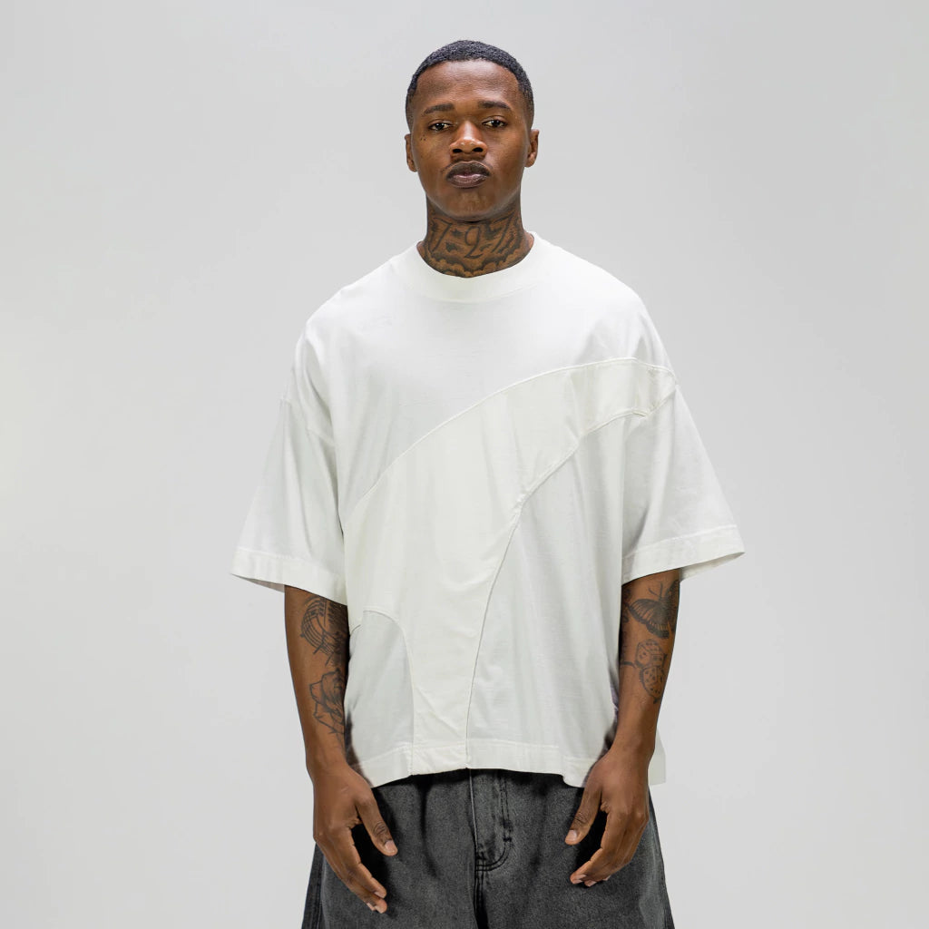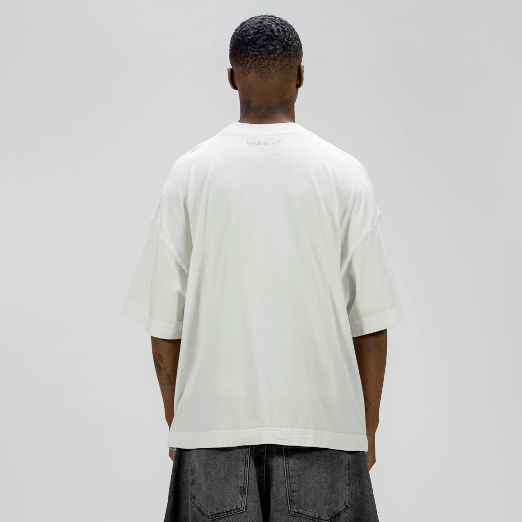 Overlay Offwhite Boxy Tee tem modelagem boxy exclusiva com foco em um caimento perfeito ao corpo.